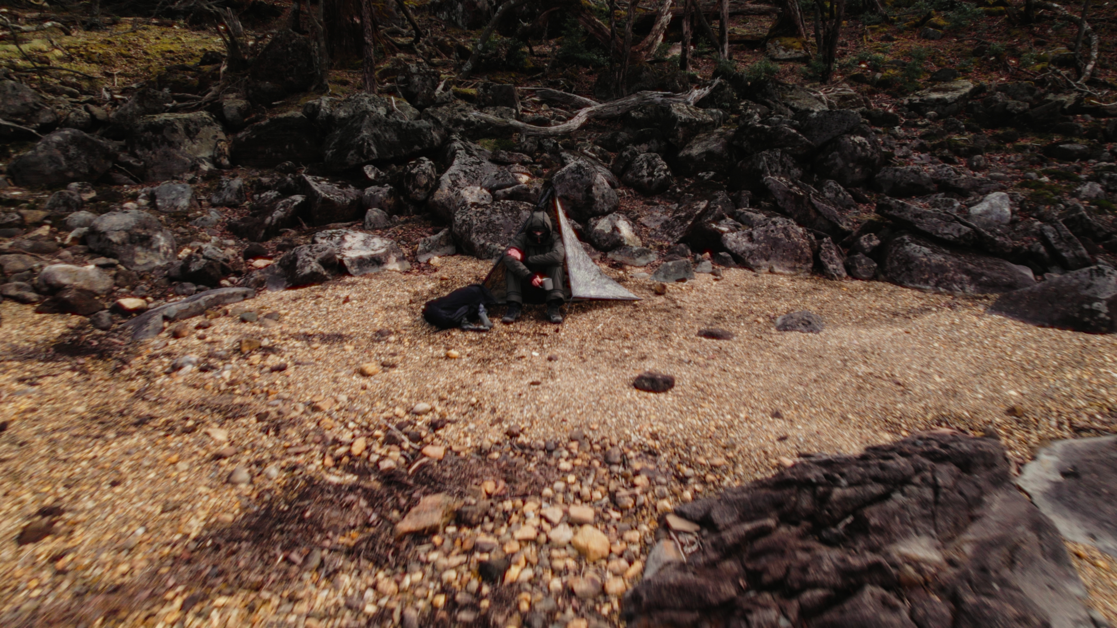 DCF 판초-쉘터를 빠르게 설치하고 햇빛과 바람을 피해 휴식을 취했습니다.